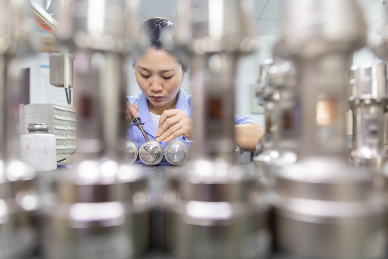 工人對傳感器進行組橋走線